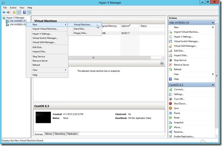 For saving hard disk space in virtualization lab, we will generally create a virtual hard disk with parent-child relationship. Thanks every virtualization vendors to supply the related tool in its product. In the moment, I will introduce you “How to do it when there is existing CentOS 6.3 VM in Hyper-V 3.0?”
